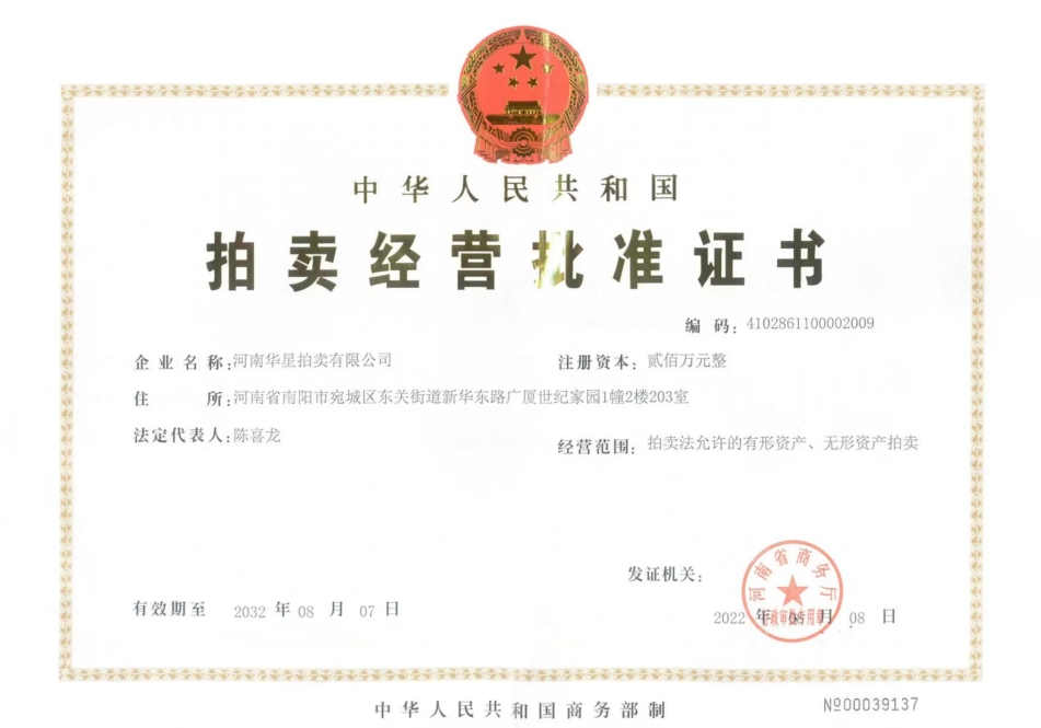 拍賣經(jīng)營批準(zhǔn)證書 |
